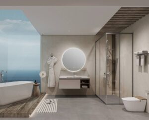 - Cabinets: Waterproof engineered wood or solid wood (treated for humidity) resists warping and mold—ideal for damp bathroom environments.